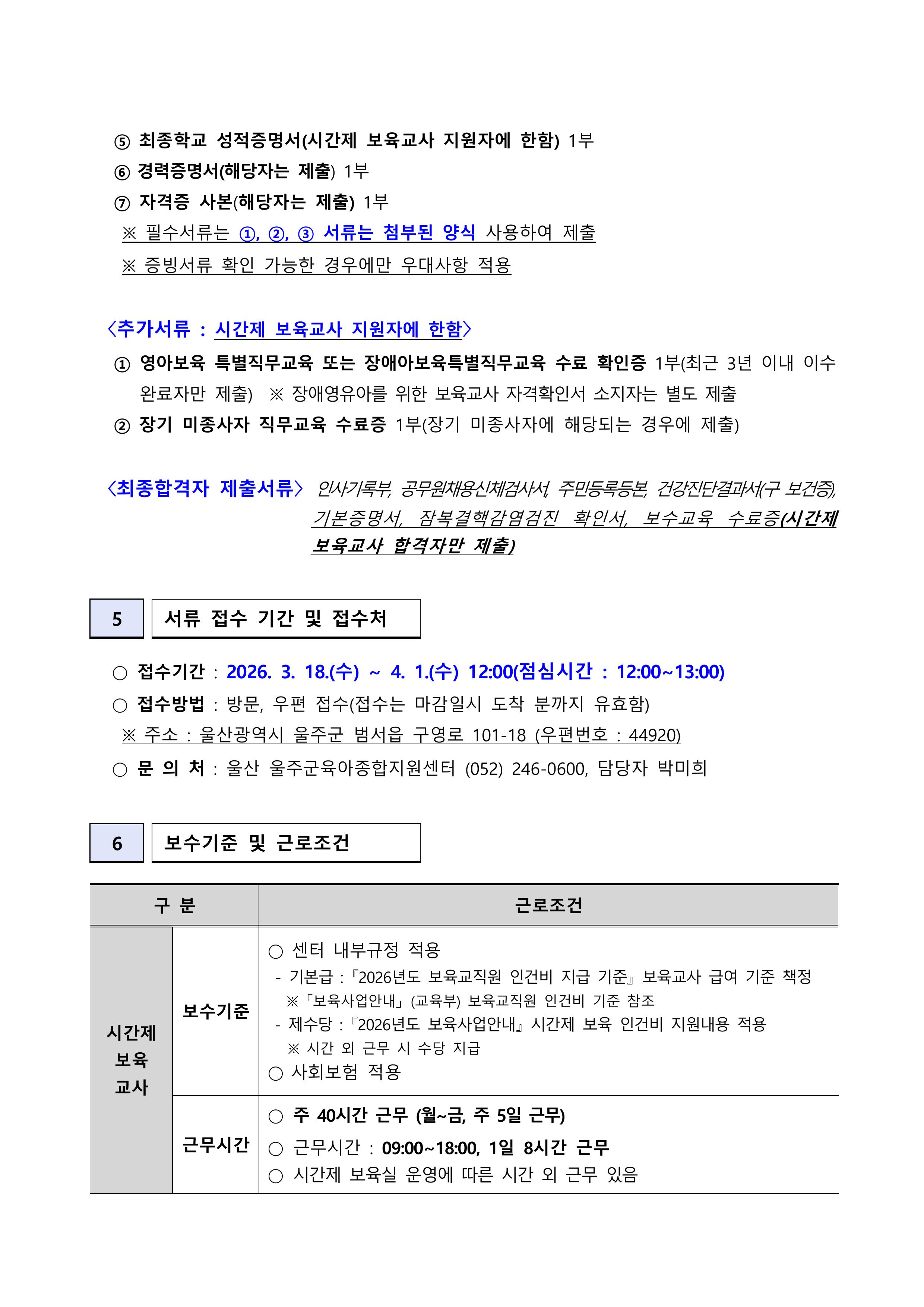 [울산 울주군육아종합지원센터] 2026-4 직원(대체교사) 채용 공고 안내