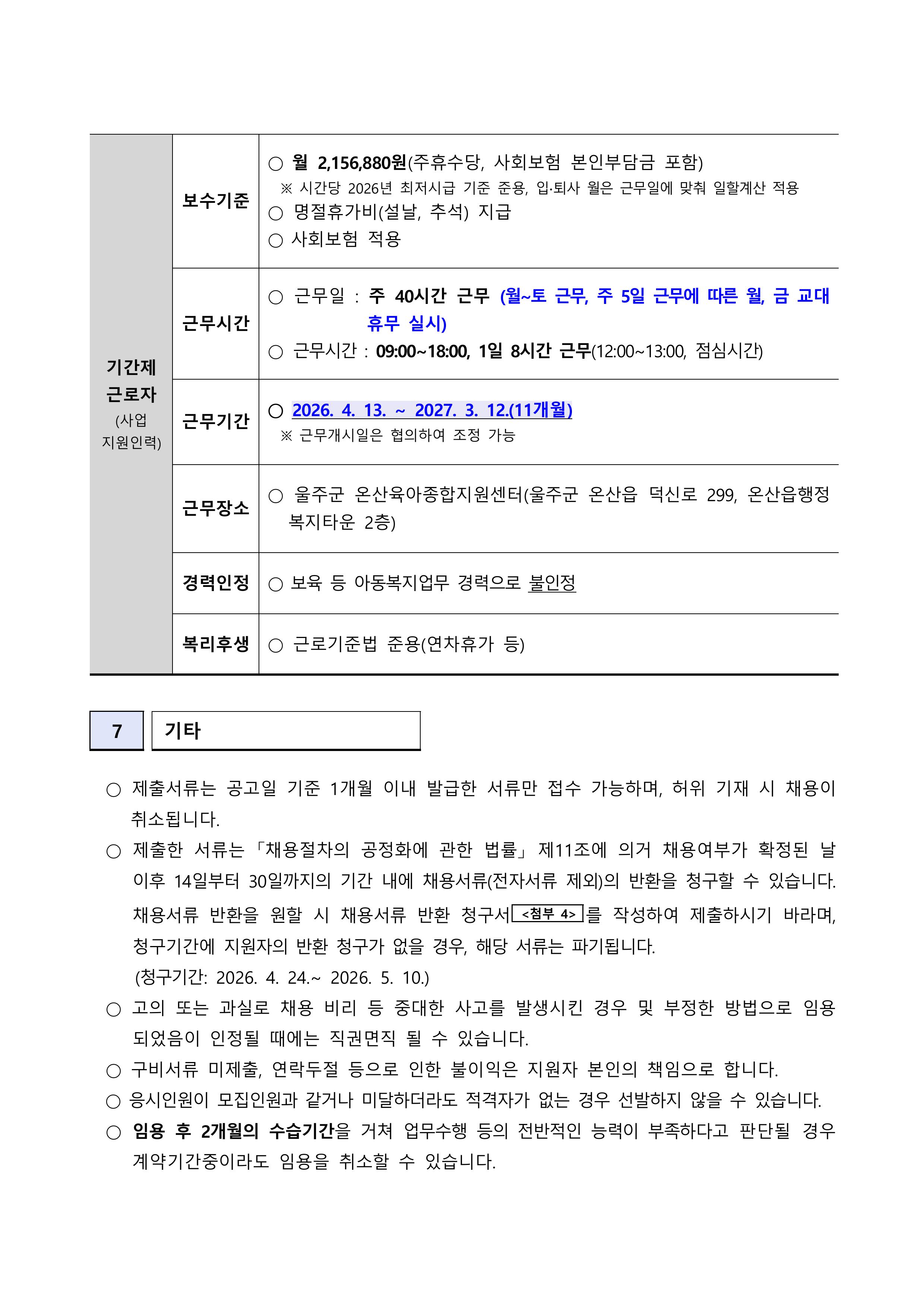 2026-5 직원(울주군 시간제보육교사, 미화원, 온산 지원인력) 채용 공고.pdf