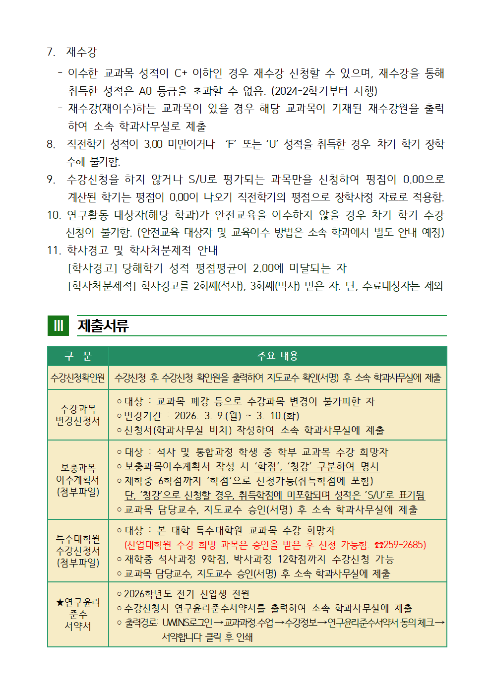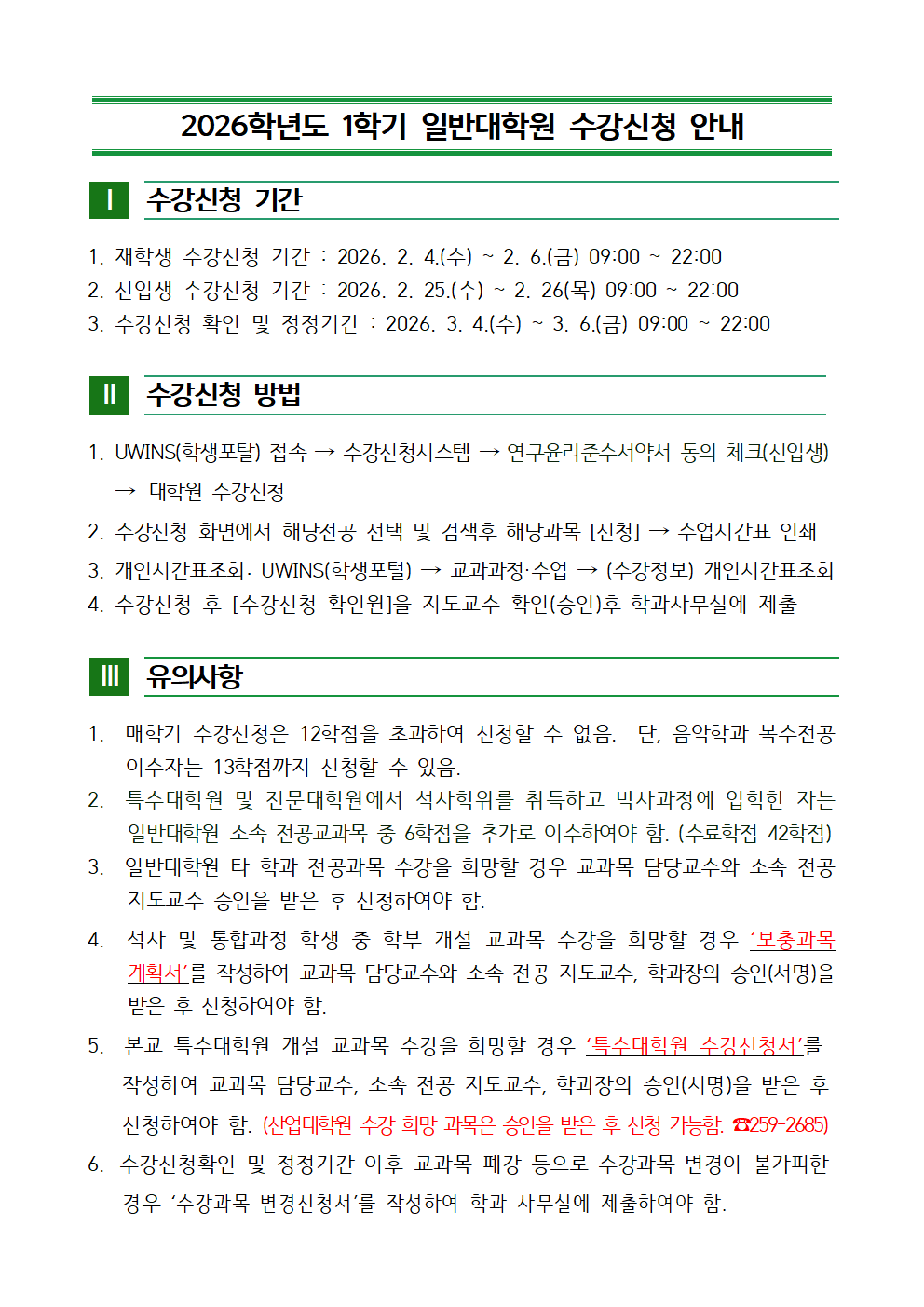 2026-1학기 일반대학원 수강신청 안내