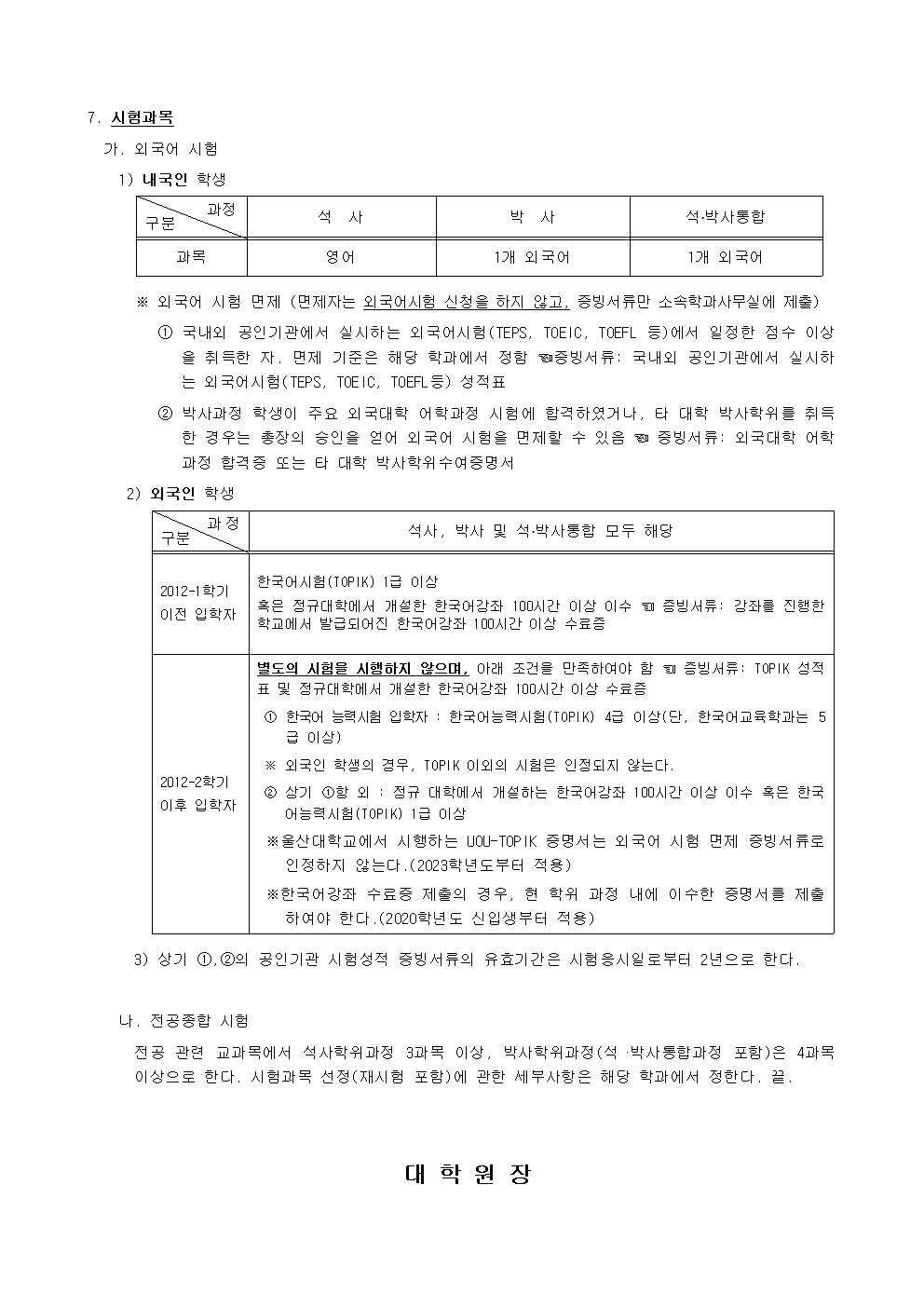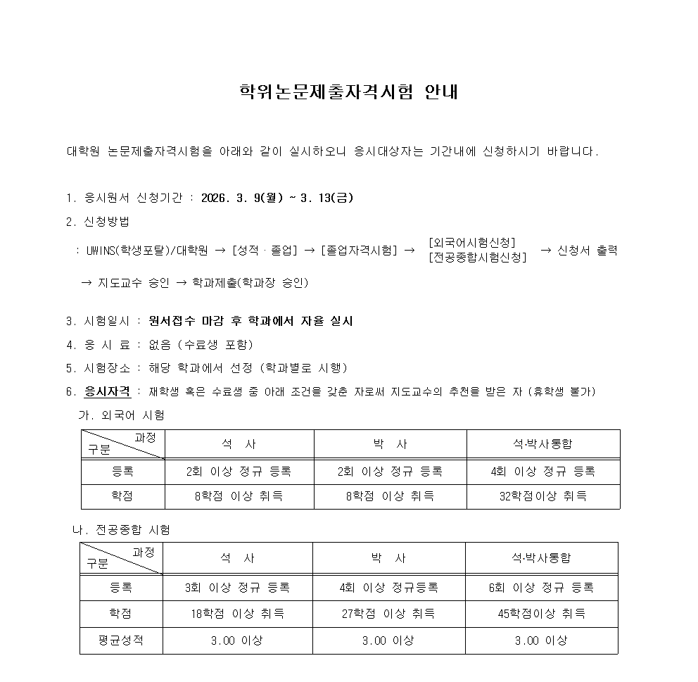 [일반대학원] 2026-1학기 학위논문제출자격시험 시행 안내