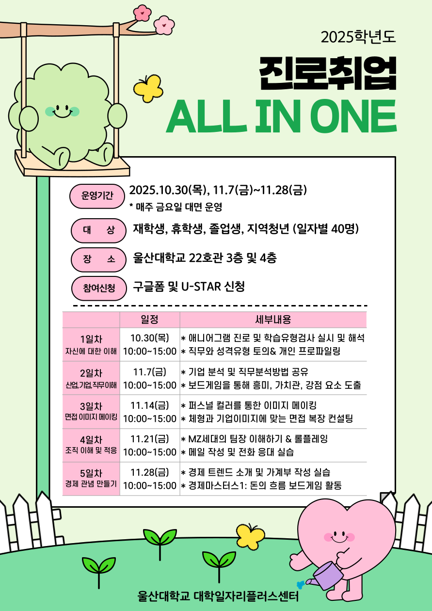 | [울산대 대학일자리+센터] 2025학년도 진로·취업 ALL IN ONE 프로그램 안내 | |||||